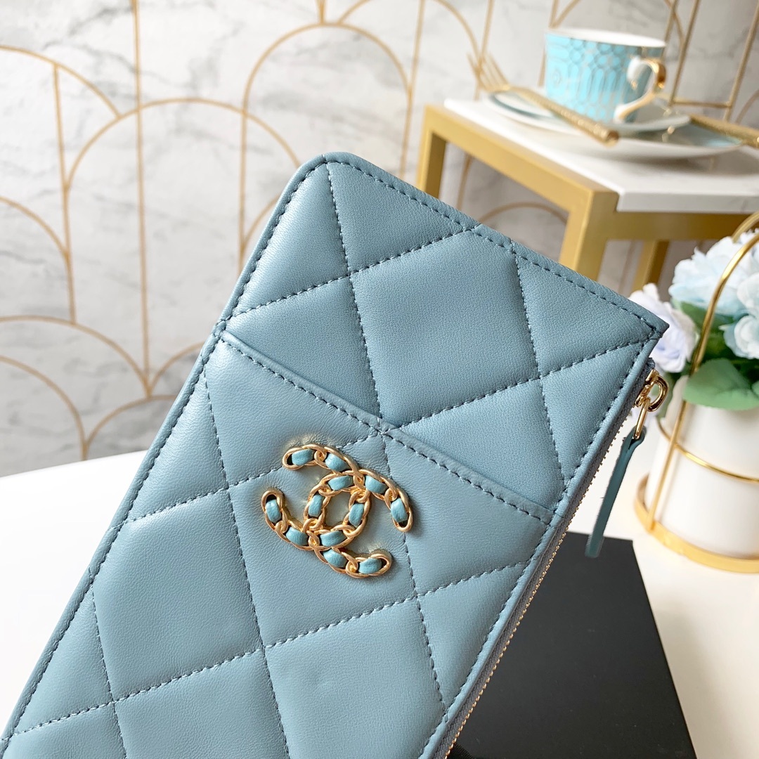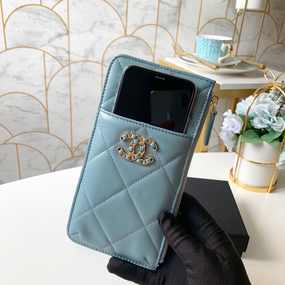 Chanel 19 Matelasse Phone and Card Case Light Blue Bag For Women 19cm/7.5in