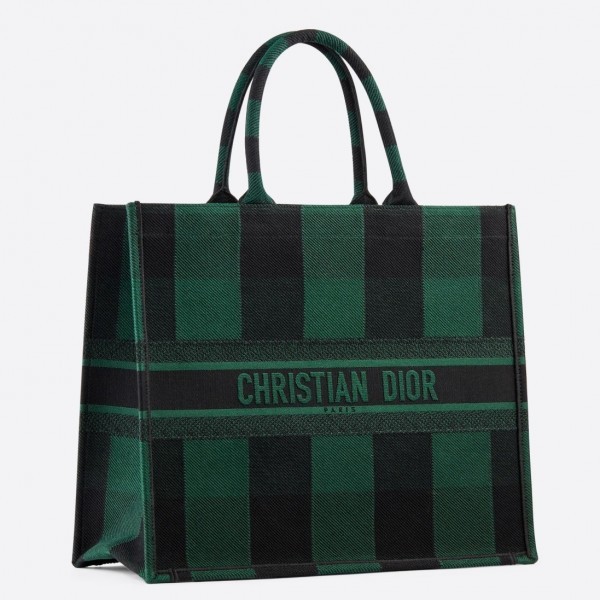 Dior Book Tote Bag Check Embroidered Canvas