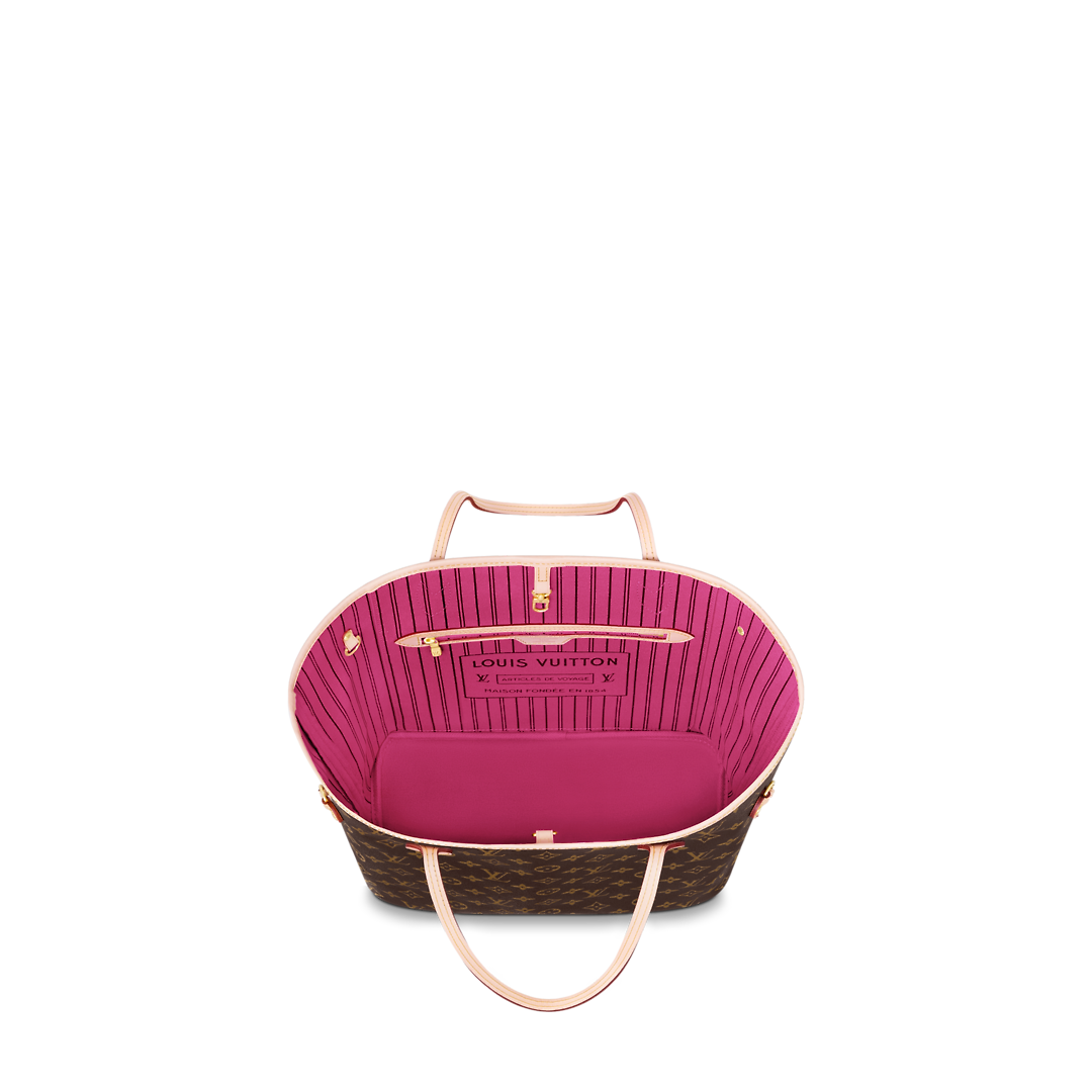 The Neverfull MM tote bag combines timeless design with traditional details. Crafted from supple Monogram canvas and trimmed in natural leather. it's roomy without being bulky. The side drawstrings can be adjusted for a smart look or loosened for a more casual look. while the comfortable slim handles allow it to be carried over the shoulder or on the elbow. The colourful fabric lined interior features a removable wallet that can be used as a handbag or additional pocket.