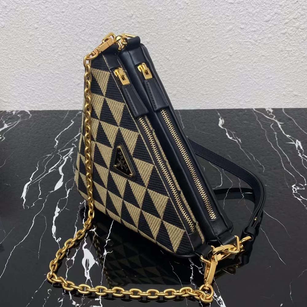 Prada Women Symbol Leather and Fabric Mini Bag Beige 28x16x13cm