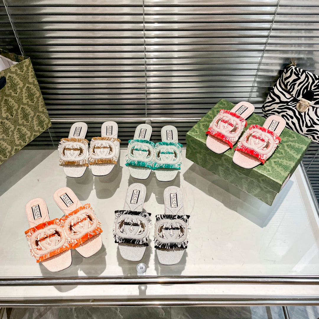 Tassel Hollow G Flat Slippers